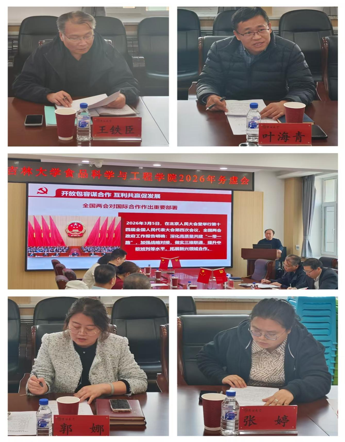 高质量发展”为题,副院长叶海青以“汇聚科研力量,提升服务区域经济和产业发展水平”为题,副院长郭娜以“开展中外合作办学面临的困难、挑战与应对策略”为题,副院长张婷以“对标一流食品学科,科学完善‘十五五’规划”为题,院长助理李杨以“抢抓时代机遇,推动食品学科国际合作实质性发展”为题,分别汇报了对2026年各分管领域重点工作的谋划思考、发展目标和下一步重点工作。