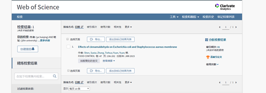 吉林大学国产自拍 为第一作者单位,在食品领域TOP 期刊“FOOD CONTROL”期刊发表论文《Effects of cinnamaldehyde on Escherichia coli and Staphylococcus aureus membrane》,到 十一月/十二月 2019 为止,受到引用的次数已将其归入其学术领域中最优秀的 1% 之列,入选“ESI高被引”。(全文链接://www.sciencedirect.com/science/article/pii/S095671351400379X?via%3Dihub)