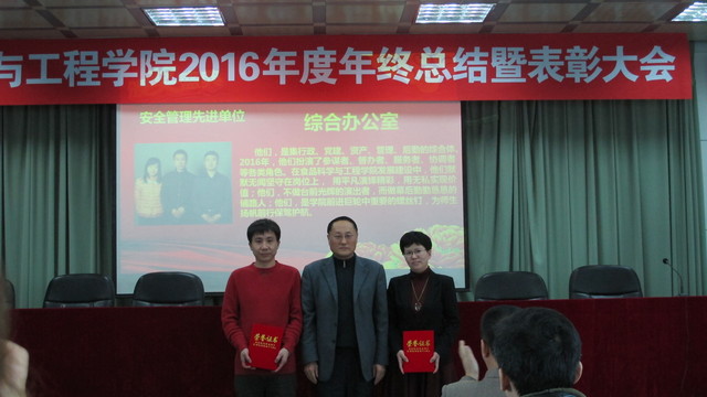 领导先后为2016年度先进单位和安全管理先进单位,教书育人特别奖,教书育人先进个人,科研工作先进个人,管理服务育人先进个人,优秀学生和先进班级进行颁奖,并合影留念。