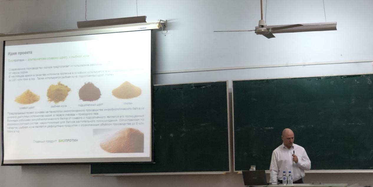 教师代表、全体研究生参加报告会。报告过程中,叶夫根尼·列奥尼多维奇·契特教授首先向大家介绍了俄罗斯从天然气、沼气等物质中提取单细胞蛋白质的研究进展。随后,斯切尔努什金·德米特里·维克托罗维奇博士向大家介绍了基于甲烷营养微生物生产单细胞蛋白质的技术情况,以及单细胞蛋白质工厂化生产所需要具备的条件和技术。