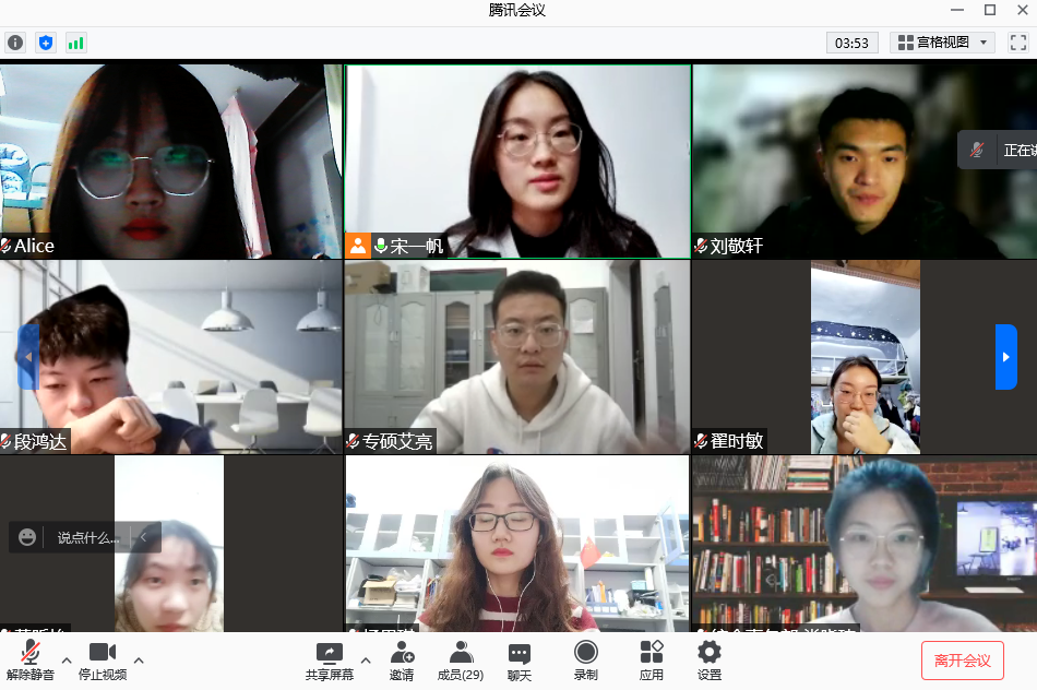 研究生会于2021年11月23日20:30线上开展了研究生会培训活动,本次培训活动由研会现执行主席宋一帆主持,全体研究生会成员参加了此次培训。