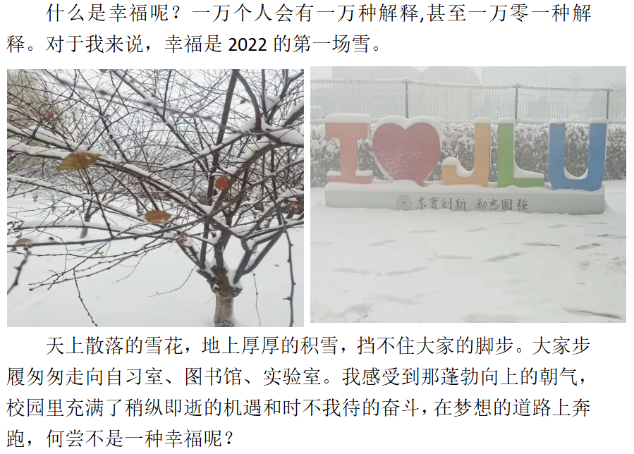 于2022年11月11日开展了“记令我幸福的一件小事”线上征文活动。同学们积极参与活动,一封封记载着真情实感的邮件雪花般寄来,经过评选后10份优秀作品脱颖而出。阅读这些文章时,常常被作者真诚、质朴的情怀所感动,正是“源于生命活水,诉诸真诚笔触,记录身边幸福,升华心灵境界”。这些文章,或记录无私崇高的师德师恩,恰似春风化雨,润物无声;或描述纯真无瑕的同窗情谊,胜过手足深情,堪比争荣桃李;或叙写淳朴善良的食堂师傅、校园门卫,虽不记其名姓,永难忘其笑颜。教室里,教学相长,见证共同成长;操场竞技,身姿矫健,为你呐喊加油;花园曲廊,开心畅谈,叩响青春和弦;食堂寝室,朝夕相伴,嘘寒问暖,真情迭现……这些身边真实的感动,以或质朴或明丽的话语娓娓道来,自然有一种感染心灵、陶冶情操的功用。