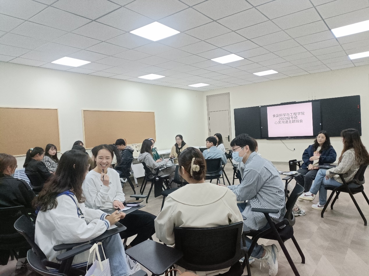 于2023年4月2日在和平校区团体活动室组织了“心灵沟通”主题班会。此次班会由研究生朋辈心理辅导员刘姿爱组织并主持,2022级研究生参加。
