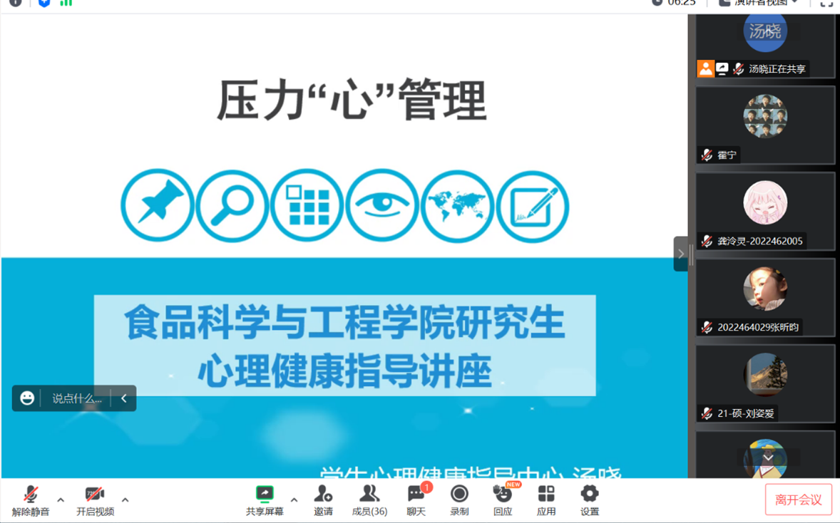 研办于6月6日下午14:00以《压力“心”管理》为题开展线上心理健康指导讲座。此次会议主讲人为心理健康指导中心汤晓老师,国产自拍