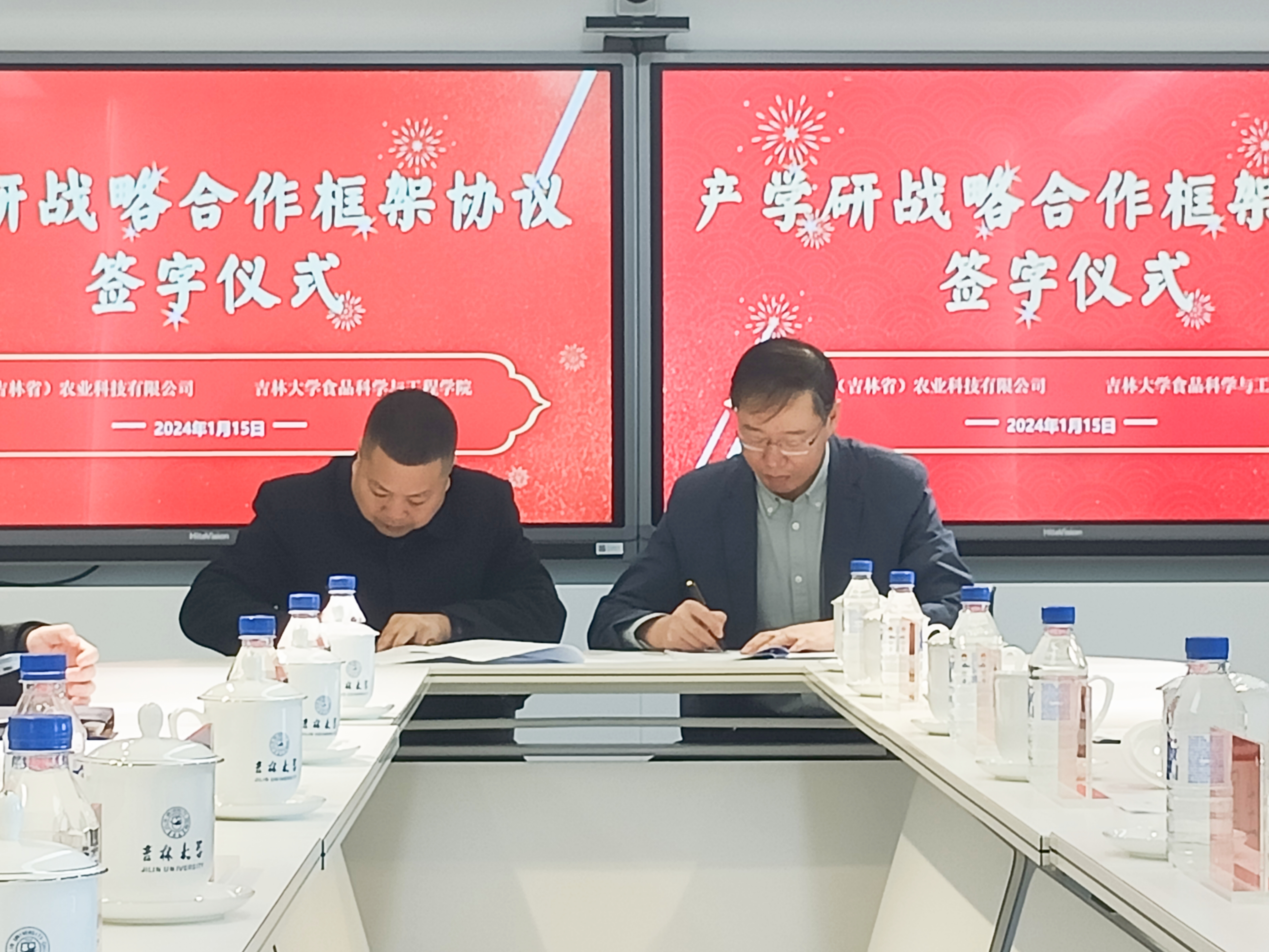 与绿佳源(吉林)农业科技有限公司产学研战略合作框架协议签字仪式在鼎新楼会议室举行。企业总经理尹永飞等一行5人,吉林大学党委副书记、副校长王利锋,工会主席闫国生、副主席张刚,国产自拍