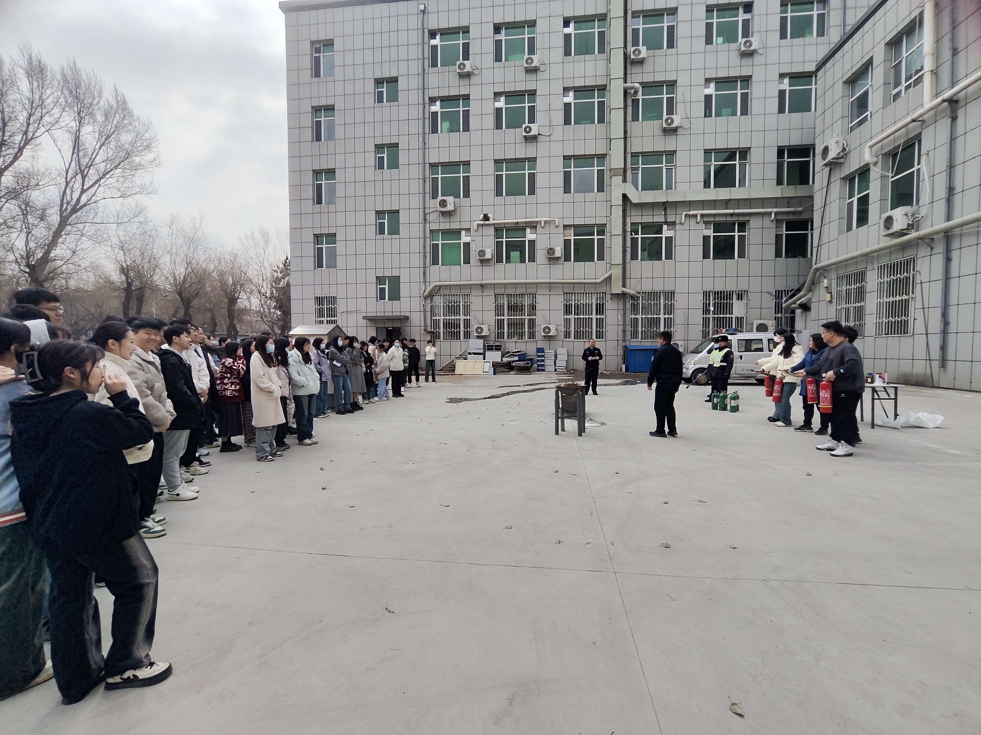 师生在保卫处老师们的指导下按照应急疏散安全路线快速撤离。西区保卫办任亚峰老师对火灾初期的扑救、控制及灭火器使用等进行了详细讲解。