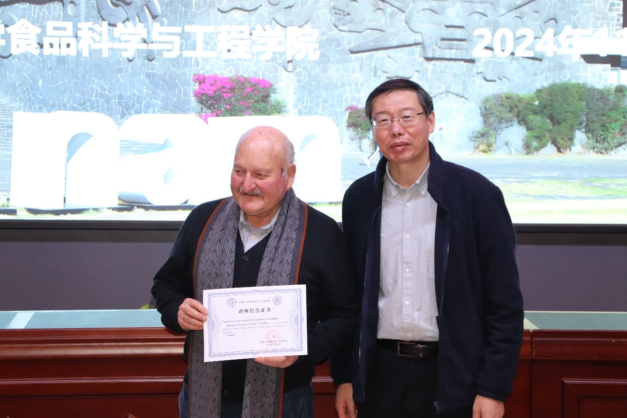 讲座结束后,院长张铁华为Carlos教授颁发了讲座纪念证书。