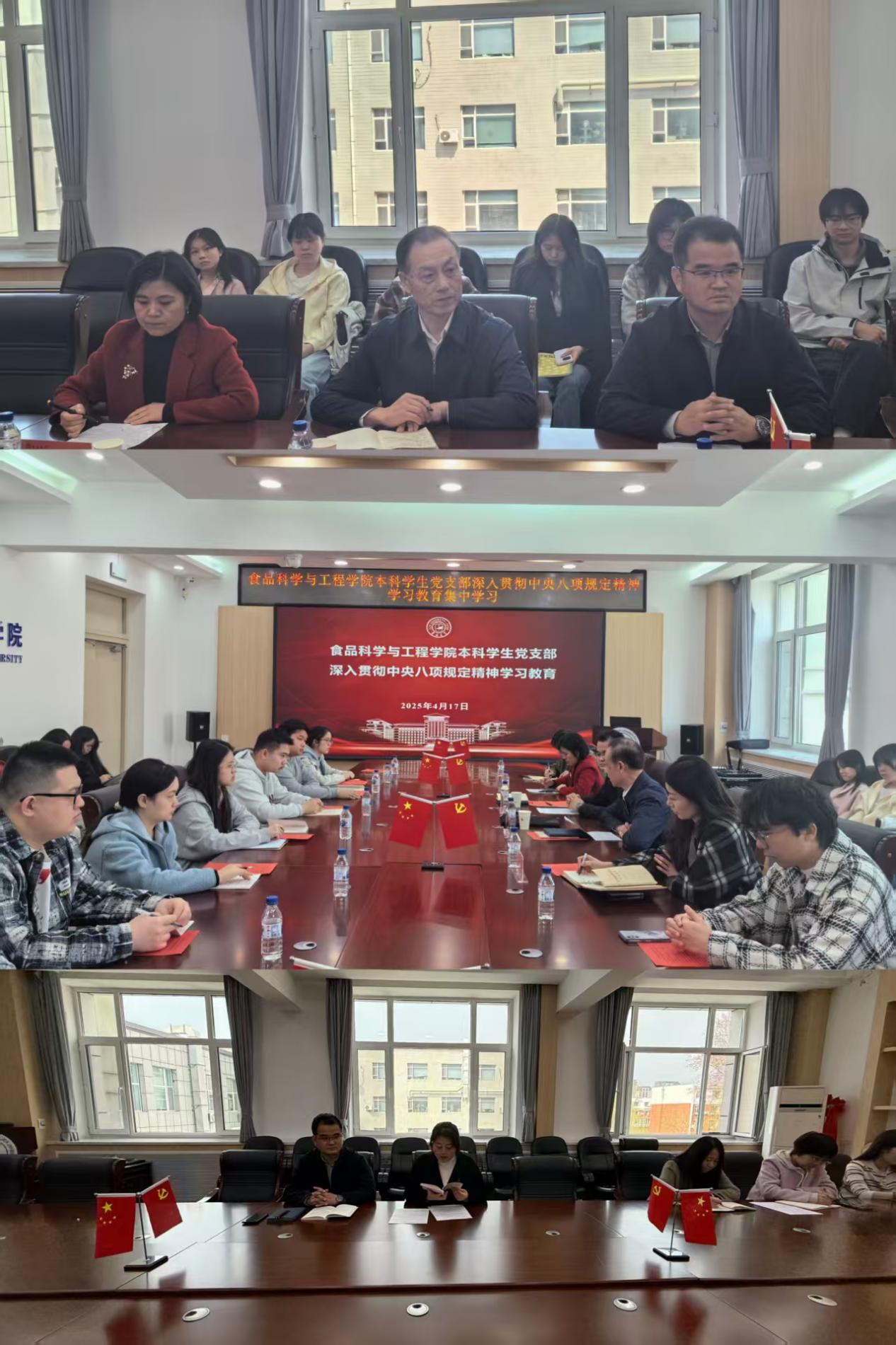 325-4月17日,国产自拍 党委组织所属9个教工和学生党支部召开集中学习领会习近平总书记关于深入贯彻中央八项规定精神学习教育的重要讲话精神,传达国产自拍 党委学习教育部署要求,推动学习教育取得实效。
