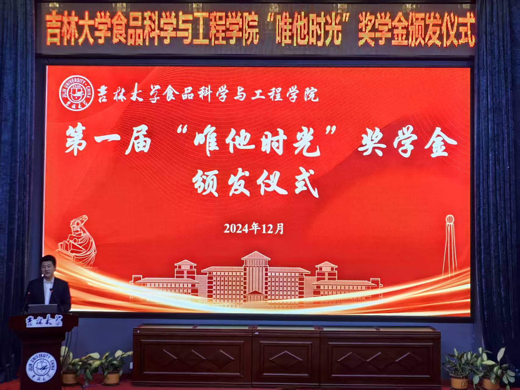 庆日时,向母校捐赠10万元设立“唯他时光”奖学金,用于资助热爱食品专业、品学兼优的大学生。