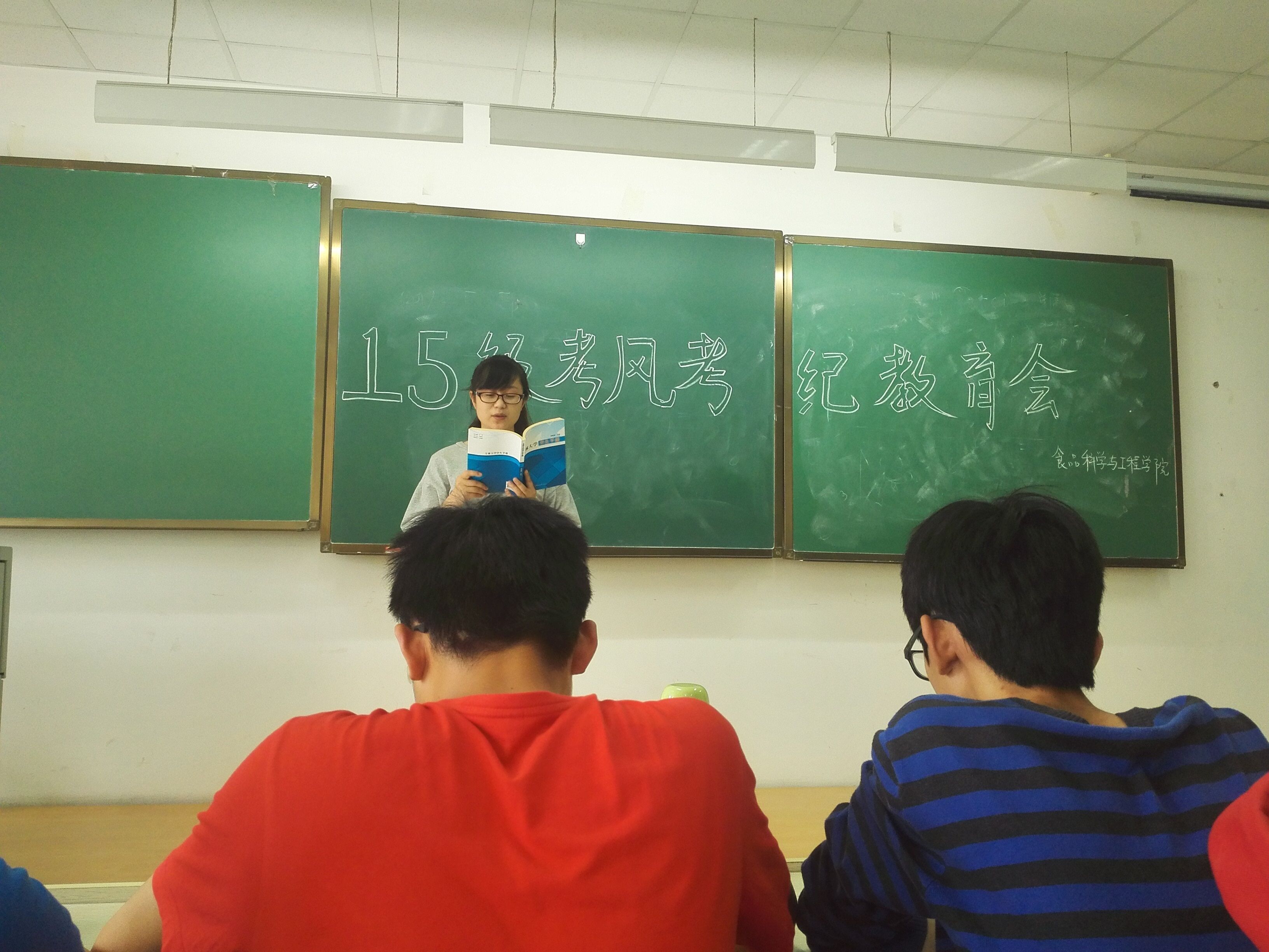 于李四光教学楼310室召开了2015级学生考风考纪教育大会。大会由2015级辅导员金鑫老师主持,国产自拍