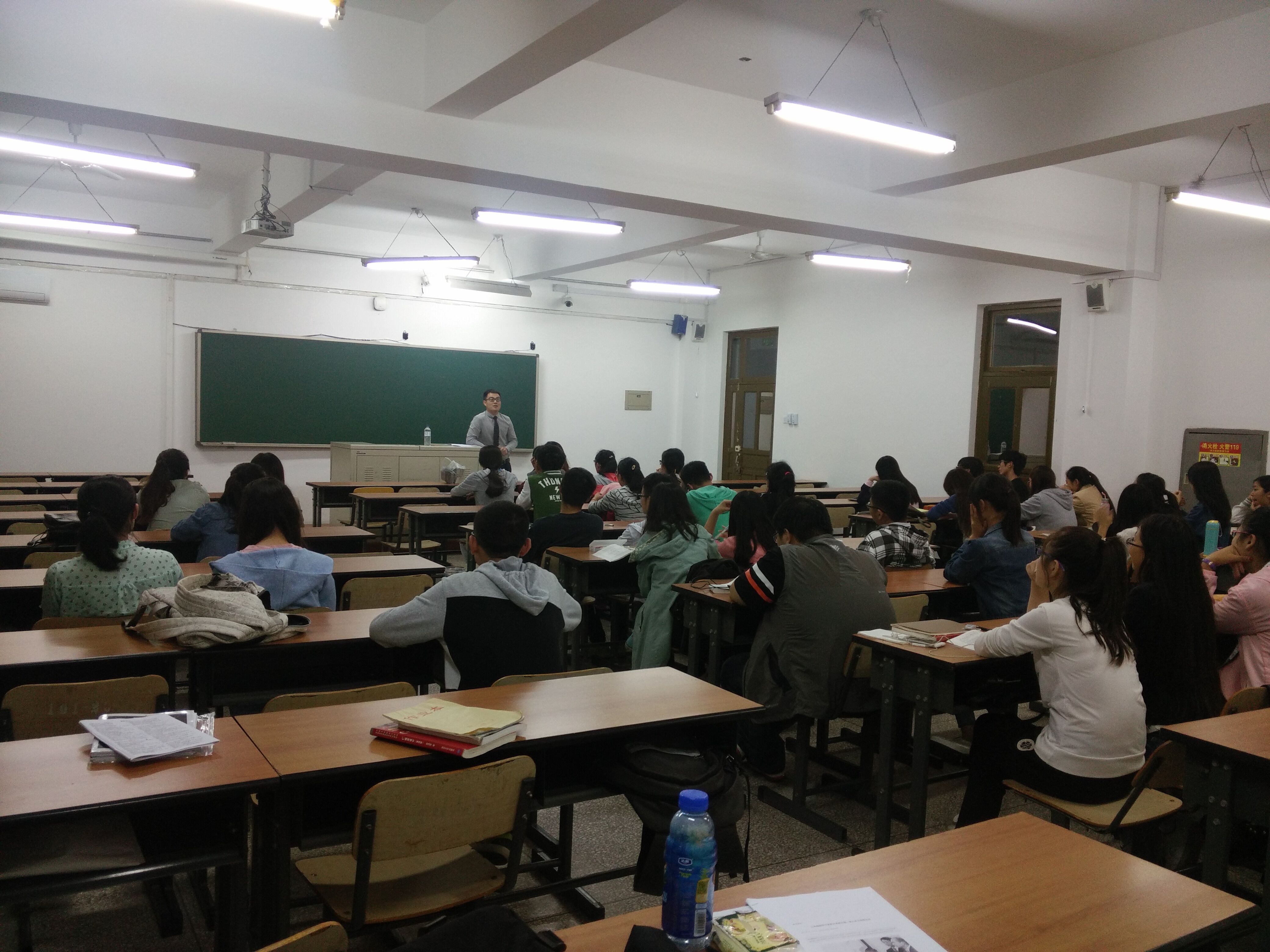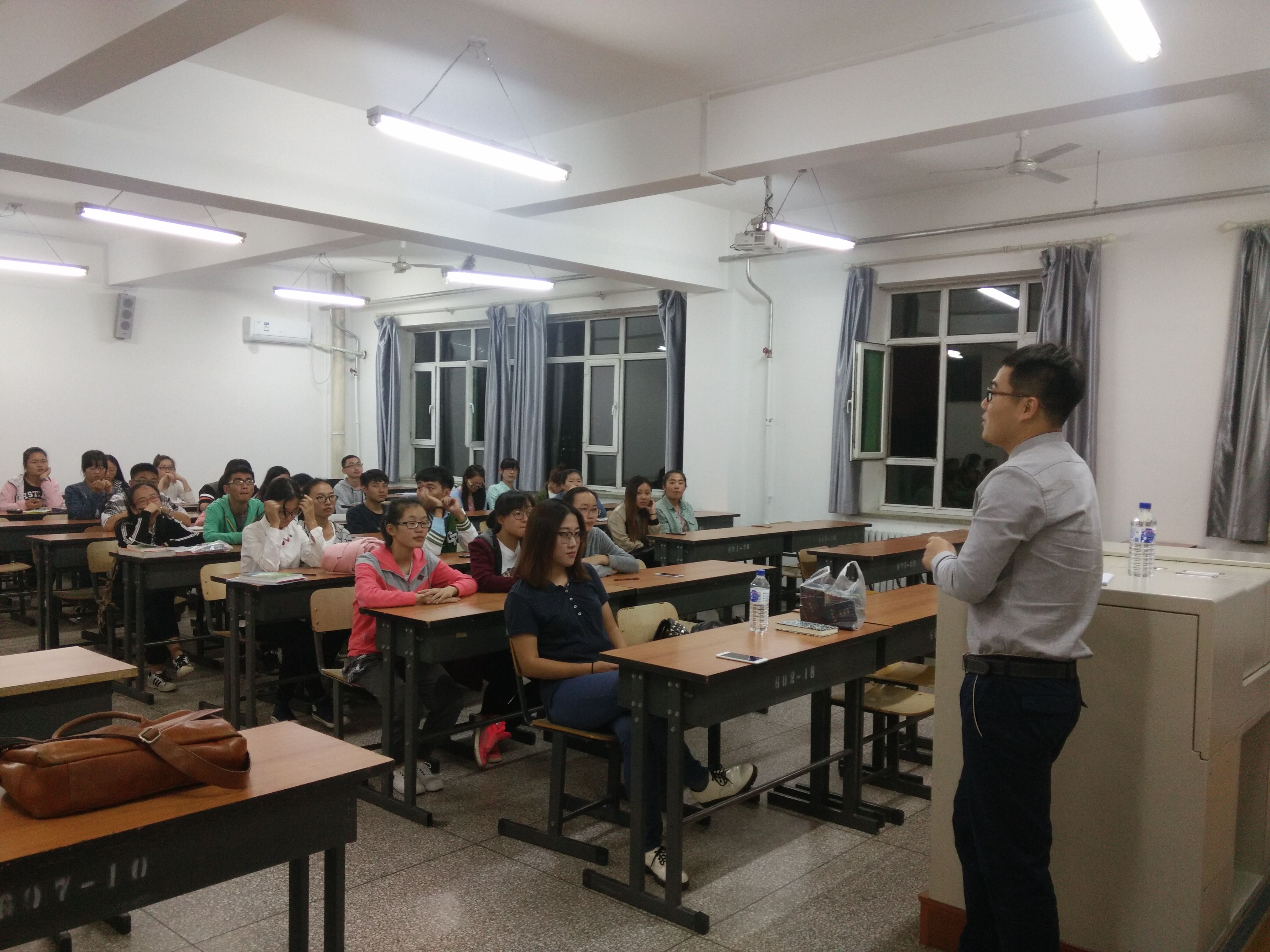 兼职博士生辅导员于一丁和2015级同学参加讲座。 在本次讲座中,赵泽众学长首先从三个方面对大学生活做出了精彩诠释,内容包括大学的根本任务、学会确立目标、大学生活的适应与转变等等。他从自己的个人经历出发,与同学们分享了从“学渣”到“学霸”的心路历程和切身感悟,告诉大家唯一让自己感到愉悦的方式是做自己想做的事情,并鼓励同学们寻找自己真正感兴趣的方向。 随后,他以“爱自己、爱祖国”为主题,对大学生的时代责任进行了阐述。以钓鱼岛事件为例,告诫作为大学生的我们应该有辨真伪的能力和冷静的头脑,应该理性爱国。同时强调我们应该学会“尊重”,尊重身边每一个人,不论地位高低。他以自己读研时的经历告诉我们尊重应该是发自内心的,有时尊重也会带来幸运,这也是每一个大学生必须具备的素养。 在最后的互动环节,学长认真回答了诸如如何坚定信念三次考研,怎样克服家庭和就业压力追求自己的梦想等问题,并鼓励同学们尽量多尝试不同的事情来找到自己所热爱的事业,与更多人交谈,读更多书,打开心扉接受各种不同的文化,最终在人生中留下一些值得纪念的东西,并努力把这个社会变得更好。