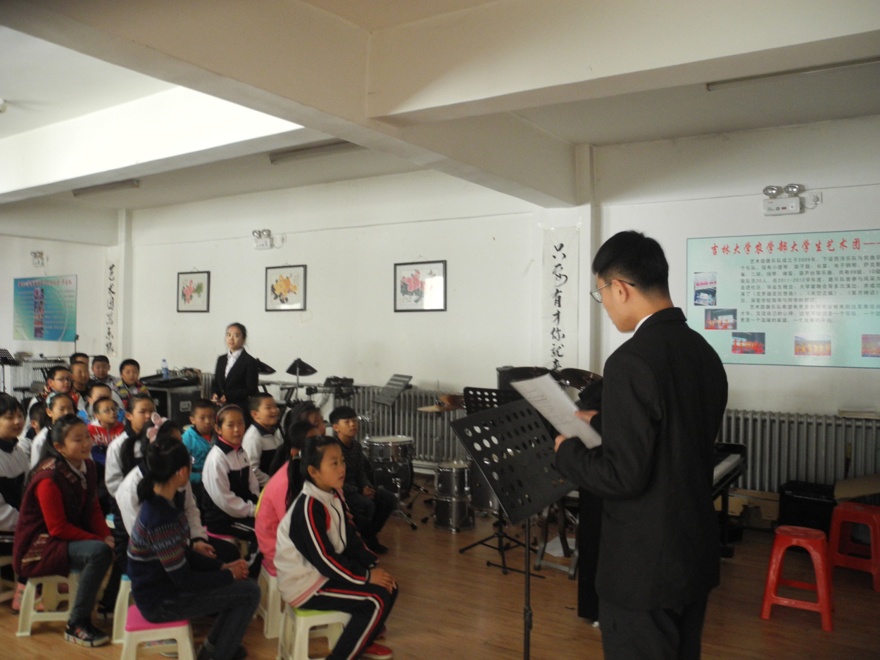 专业老师的带领下参观了食品实验室,并向孩子们简单介绍了一些实验仪器的操作方法并当场示范,孩子们好奇认真,问出了一些颇具孩子天真特色的问题,现场气氛和谐而热烈;“艺术家”组来到了文体活动中心的琴房,在工作人员的带领下学唱吉林大国产自拍