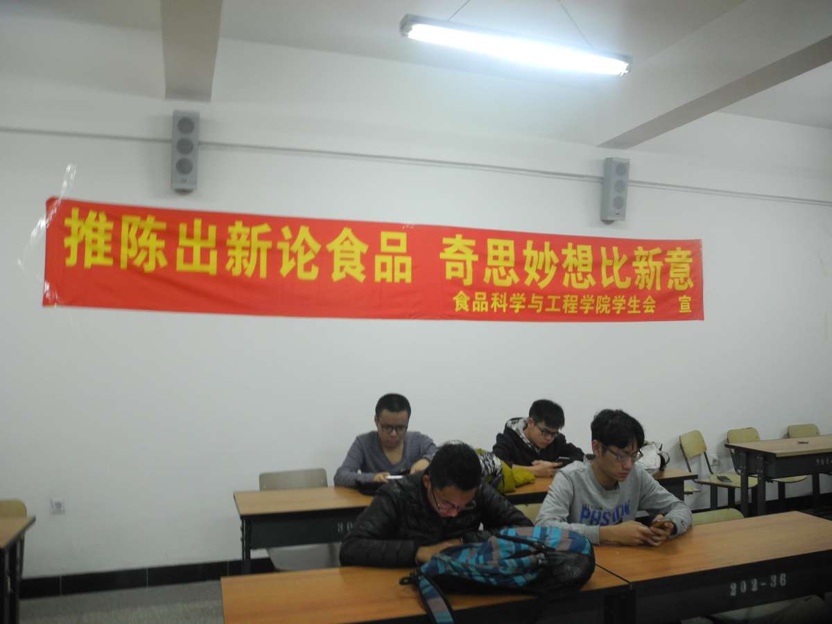 学生会宣传部和创新创业部联合举办的“与食俱进”创新创业大赛宣讲会于科学讲堂302举办。此次宣讲特别邀请到了2013级创新创新保研获得者、“大圣归来”创意面包的获奖者侯萍萍学姐为各参赛队伍提供思路。 首先,主持人介绍了本次“与食俱进”创新创业大赛的活动主题、汇报要素、汇报演讲环节及评分细则,期间,可由同学们进行提问。同学们听得仔细,问得认真,大家积极响应,反应热烈。接下来,由侯萍萍学姐向大家简要介绍了参加“盼盼杯”及“康师傅”烘焙大赛的比赛经验,同时,对同学们接下来要参加的比赛给出了详细的建议并对同学们表达了美好的祝愿。最后,国产自拍