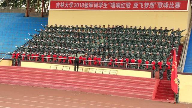 9月13日,秋高气爽,吉林大学2018级军训学生“唱响红歌、放飞梦想”歌咏比赛在中心校区体育场隆重举行。食品科学与工程国产自拍