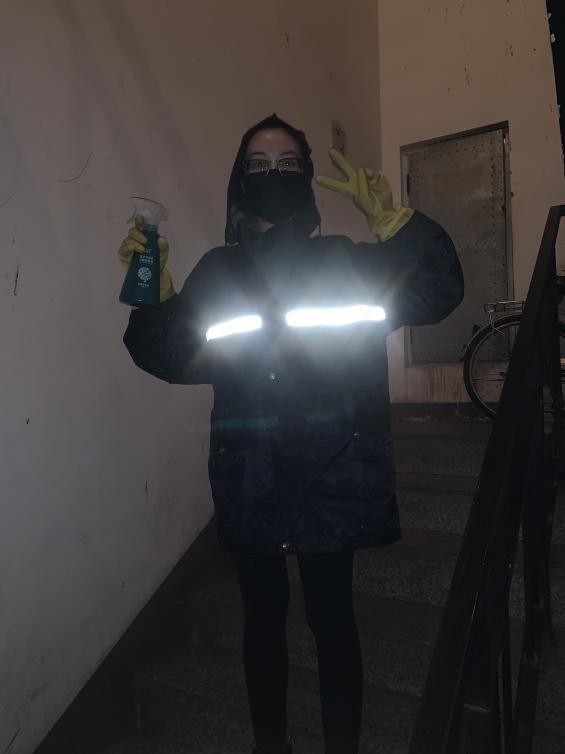随着疫情的不断扩散,吕思雯家所居住的小区被列为特级管控小区。小区内所有的人员禁止出入,楼门封闭管理。看着母亲每天向小区居民宣传疫情,出入人员登记,粘贴防疫传单及政府公告,吕思雯也非常想在这非常时期尽自己的一份微薄之力。骨折卧床的父亲了解到她的想法也鼓励她积极报名参加,让她做好自身的防护的同时为社会做点贡献。于是她主动报名了社区的志愿活动,承担起为居民清扫垃圾、对楼道进行每天三次的消毒任务。社区的消毒液、一次性手套、口罩等防疫物资不够,她便利用了家里一切能用的物品。用雨衣替代防护服,用塑料套替代防护面罩,忙碌在在零下20℃多的严冬里。这个特级防护小区中只能看到社区的志愿者顶着寒风穿梭在楼群中为大家服务的身影,这其中便有吕思雯。