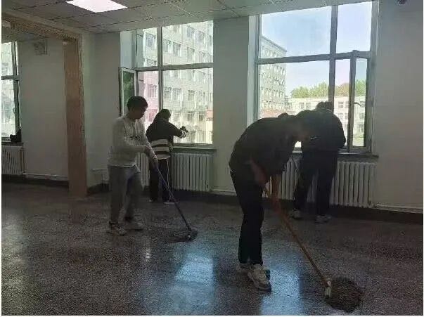 组织学生志愿者们在管理楼开展清洁卫生的志愿活动,让学生们体验劳动的快乐,感受劳动的重要性。