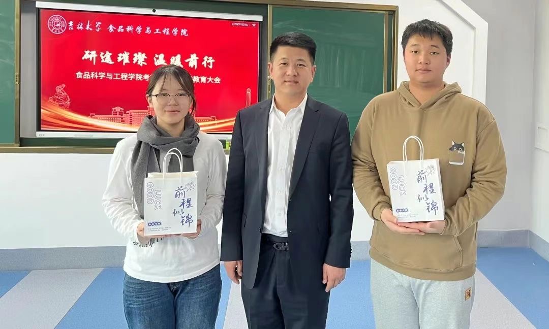 党委副书记兼副院长李超和学生工作办公室主任郝慧于管理楼206教室慰问考研学生,为他们送上一份份满含深情的考研礼物。“苹”安喜乐,“薯”你最牛,“棒”上有名,“士”气高涨,“可”期所“乐”,国产自拍