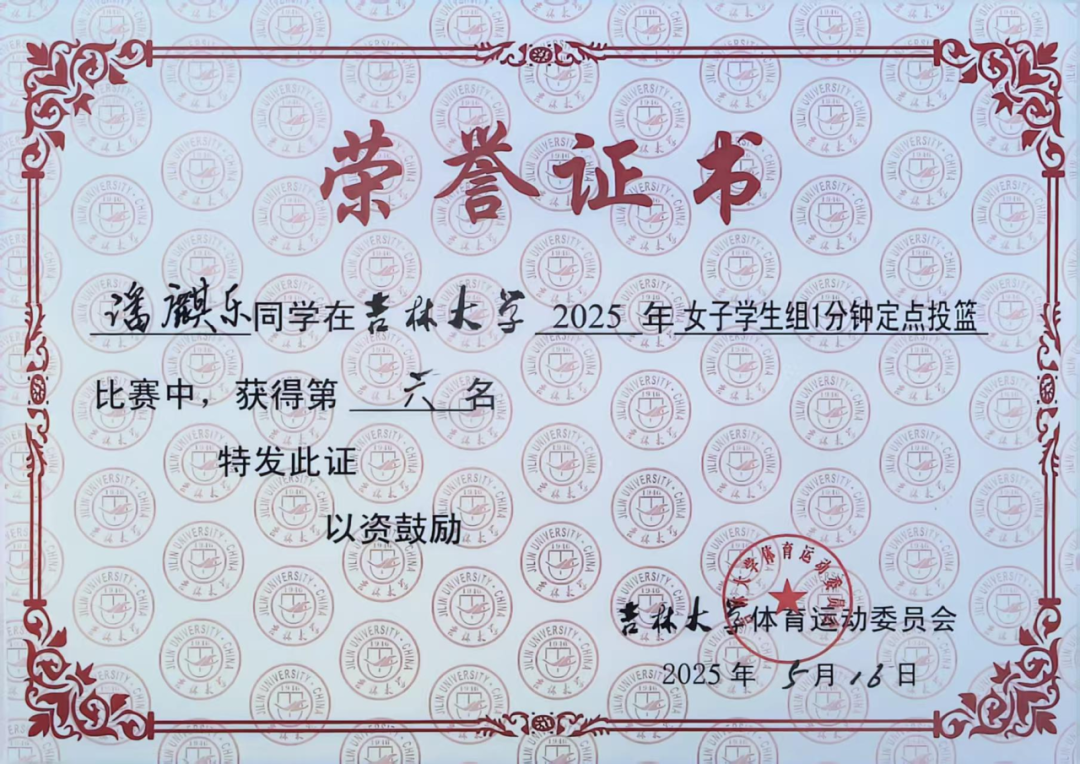 田赛场上,亮点频现:篮球定点投篮选手手起球落、弹无虚发;跳远运动员助跑腾空,身姿如弧光划破天际;铅球与胶球掷远赛场,选手奋力挥臂,球体如流星划破长空。最终,舍玉龙、潘麒乐分别在学男 / 学女一分钟定点投篮中斩获第 1 名、第 6 名。