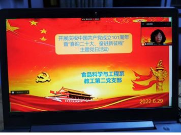 统一布置,食品科学与工程系教工第二党支部于2022年6月29日晚上20:00~20:30,通过腾讯会议召开了“喜迎二十大,永远跟党走,奋进新征程"主题党日活动。活动由李欣欣书记主持,全体党员参加。