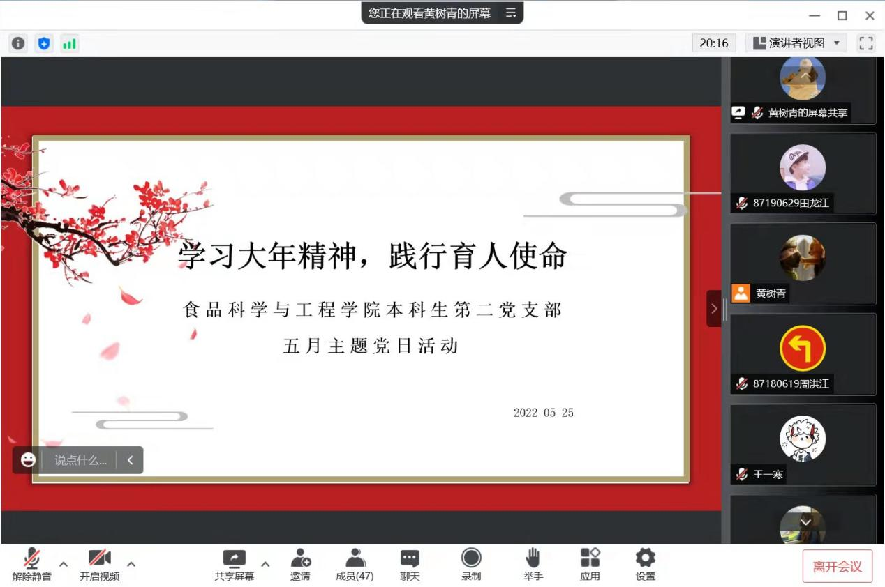 最后,王新欣同志就大会内容进行总结:关于黄大年精神,当代青年不仅要学习黄大年老师心有大我、至诚报国的爱国情怀,教书育人、敢为人先的敬业精神,淡泊名利、甘于奉献的高尚情操;更要学习其作为一名优秀科学家、优秀战略科学家的优秀品质!在抗疫方面,志愿者的辛勤付出是有价值、有意义的,连续十几日的零新增将是最终胜利的曙光!至此,党日活动圆满结束。