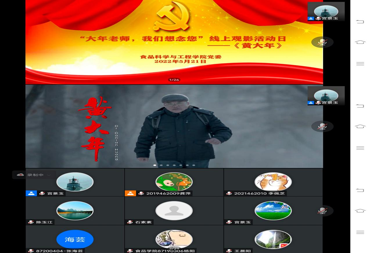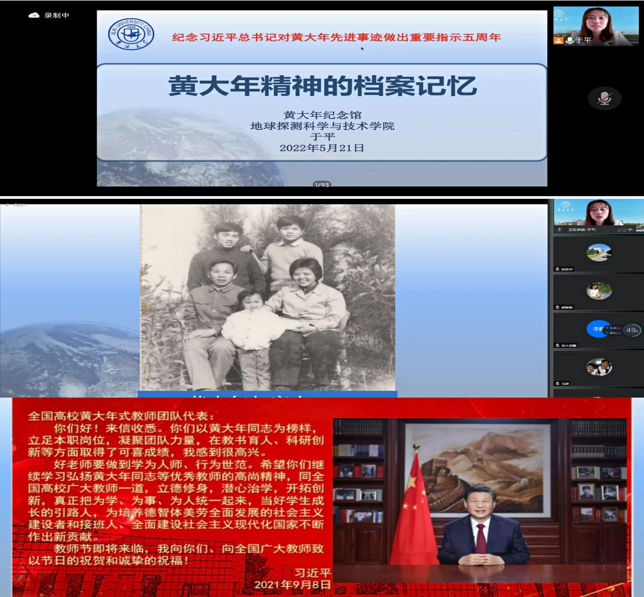 党委在5月21日上午10:00-11:20组织教师观看黄大年纪念馆副馆长于平作“黄大年精神的档案记忆”报告;5月21日下午13:00-19:45开展系列主题活动之五组织全院师生在腾讯会议线上连续开展三场“大年老师,我们想念您”线上观影活动——观看电影《黄大年》;在5月22日下午18:30,组织师生通过吉林大学视频号直播间观看吉林大学原创话剧《黄大年》;在5月23日上午,组织师生通过国产自拍