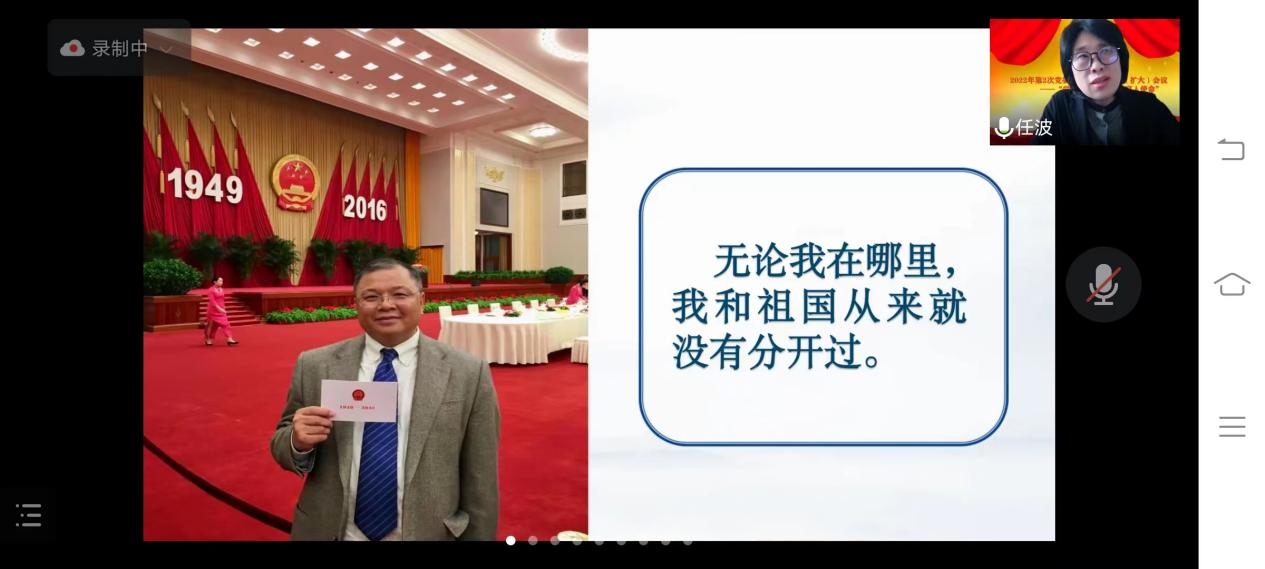 会上,任波副主席从同事、挚友的角度,深情回忆了黄大年无私奉献、爱国奋斗的一生。讲述了黄大年教授心有大我、至诚报国的爱国情怀,教书育人、敢为人先的敬业精神和淡泊名利、甘于奉献的高尚节操。当她讲到黄大年老师只要祖国需要必全力以赴、时刻在等待祖国的召唤,放弃国外优越条件义无反顾地回国、报恩母校的培养,当祖国需要时无论如何我都要回来、无论我在哪里我和祖国从来没有分开过,病重时还不忘给学生解答疑难问题等感人之处时,大家纷纷被黄大年老师的胸怀和情操所感动,频频拭泪,撼人心魄。现场同志们通过任波副主席声情并茂的精彩演讲,对黄大年老师有了更加立体的、全面的了解,感悟到了英雄之所以为了英雄是多年自律、自省不断改造自己世界观的结果;楷模之所以成为了楷模是“振兴中华 乃我辈之责”理想支撑的结果。大家一致认为,追忆大年老师,“学习大年精神、践行育人使命”就是对大年老师的最好怀念,就是坚持“立德树人”根本任务的最真切的行动!