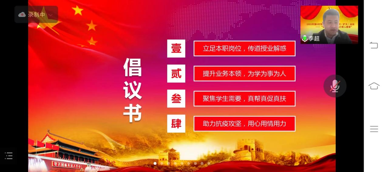 全体教师同志们积极响应“倡议书”中的倡议,“学习大年精神 践行育人使命”!就像总书记期待的那样:“做到学为人师、行为世范。当好学生成长的引路人”!使我们的学生能够“立志民族复兴,不负韶华,不负时代,不负人民,在青春的赛道上奋力奔跑,争取跑出当代青年的最好成绩!”为培养德智体美劳全面发展的社会主义建设者和接班人、推动造就堪当中华民族伟大复兴历史重任的时代新人不断作出自己新的贡献! 以实际行动向党的二十大献礼!