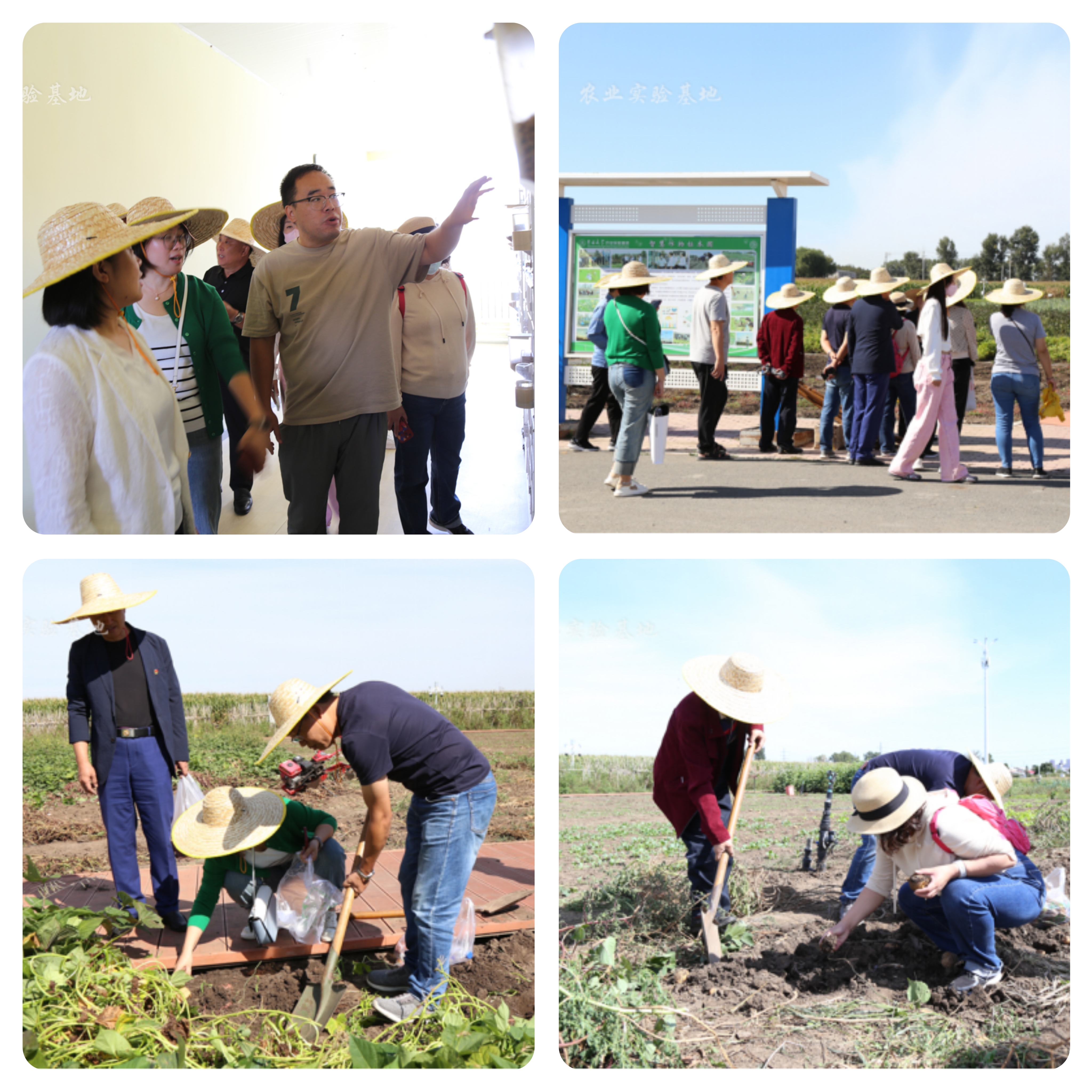 紧接着,大家携带工具来到田间地头,积极参与到农作物的丰收采摘环节。郁郁葱葱的大葱、浑圆壮实的土豆、饱满成串的花生,一片丰收的景象展现在农业实验基地智慧农业示范园里,大家互相配合,有序分工,烈日骄阳下挥洒着劳动的汗水,和煦秋风中收获着累累的果实,大家都获得了满满的成就感,感受到了劳动丰收的喜悦。