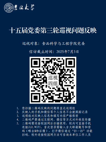 党委关于巡视工作的总体部署,自即日起,以侯代臣同志为组长的吉林大学党委第四巡视组对我单位开展巡视,巡视了解时间为四周。