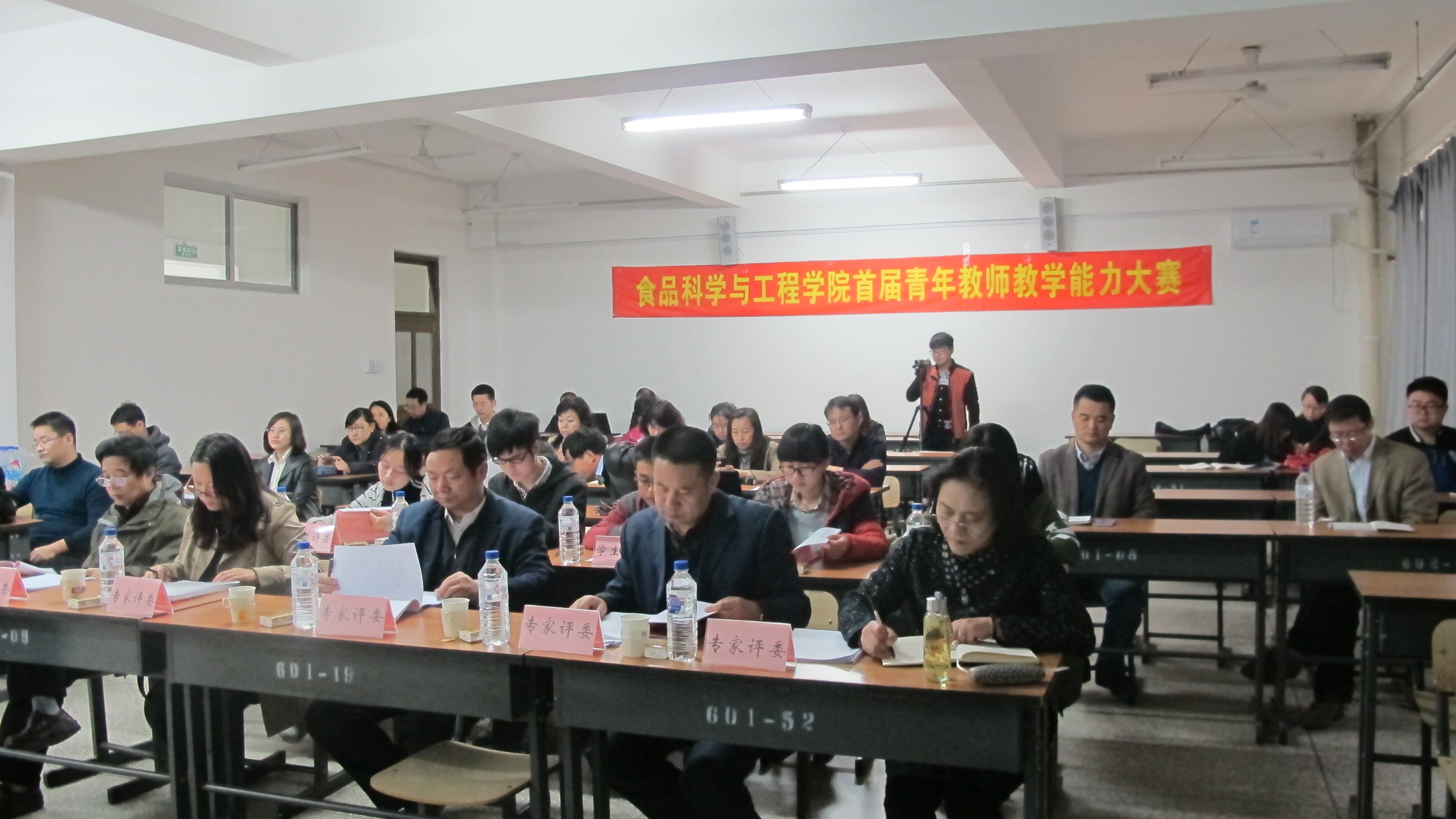 于2016年4月15日8:00-12:00在科学讲堂602开展了第一届“青年教师教学比赛”和“中青年教师双语教学比赛”初赛。本次大赛由王昕副院长主持,曾凡勤督学、姚渝丽督学、高福和书记、孙永海教授、庄红教授以及五名2015级本科生担任评委,国产自拍