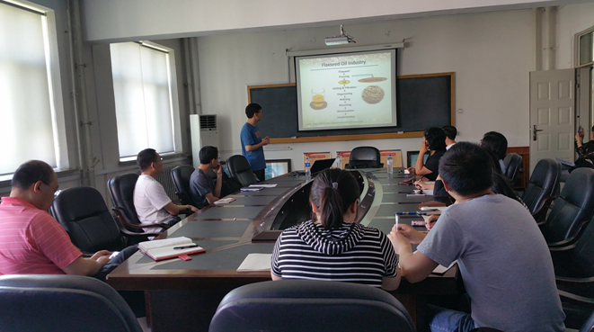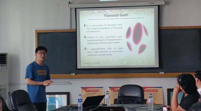 教师。刘军博士根据亚麻籽胶及其衍生物的物化特性及其与生物大分子相互作用做了相关报告。他围绕亚麻籽的品种的选择、蛋白提取的过程、比例的筛选、结构的改变和未来的展望五部分进行了详细地讲解,并介绍了亚麻籽胶的广泛应用。会后,国产自拍