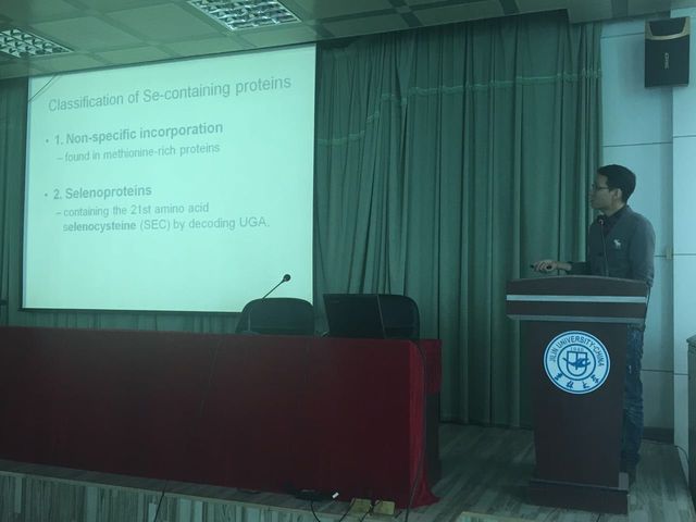 刘静波教授、周亚军教授和孙春燕教授担任专家评委。上午,首先由两位青年教师经过精心准备对自己从事的科研课题进行介绍,张婷老师报告了食源性生物活性肽对血管紧张素转化酶的抑制作用研究,赵昌辉教师报告了SBP1的丢失会降低细胞对DNA断裂剂的敏感性和细胞硒含量方面的研究。之后,研究生杨帅伶、史册、刘鑫、刘轩廷、陈冬妍、王洪美、陈玲分别展示了自己现阶段的研究成果,同时报告人、评审人及同学们进行了三方互动交流,内容涵盖基于动态蒸汽吸附及低场核磁共振技术对蛋清肽粉的水分吸附动力学及其动态分布、尼生素协同肉桂醛抗金黄色葡萄球菌、基于三螺旋DNA分子开关检测啶虫脒、非热改性技术对红松子蛋白免疫活性及二级结构的影响、油炸条件对三种薯类中呋喃形成的比较、基于离散元和传感器阵列的牛肉品质快速检测、乳酸菌对人参皂苷的生物转化等以食品科学与食品安全为主的学科交叉研究内容。下午,国产自拍