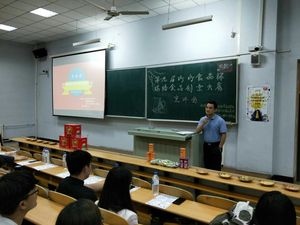 随后,来自中国食品科学技术学会的沙菲编辑介绍了学会概况,学会学术交流情况、在食品安全工作中承担的重任、在公众科普中发挥的重要功能、承接的政府职能、出版的刊物以及学会举办的各项大学生创新大赛;并详细解读了本次盼盼食品杯烘培食品创意大赛的竞赛细则,包括竞赛方向、竞赛主题、参赛资格、奖励机制以及赛制流程。盼盼食品集团郭昊天经理以一段盼盼集团宣传片带领同学们领略了家喻户晓的盼盼集团,并从烘培行业现状、大赛主题方向、创意命题剖析、盼盼产品展示以及往届作品展示五个方面对同学们进行了技术指导,并强调了参赛作品的保鲜度、安全性以及完整性等标准。