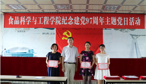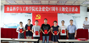 建设和党员队伍实际,对全体师生党员提出了五点意见,即希望全体党员同志们能够进一步强化“五种意识”。一是进一步强化党性意识,要加强党性修养,做到在党言党、在党为党、在党忧党;二是进一步强化宗旨意识,全心全意为师生服务,为师生办实事、解难事、做好事;三是进一步强化表率意识,做好学习的表率、工作的表率、务实的表率;四是进一步强化责任意识,责任是每名党员的党性、品质和境界;五是进一步强化使命意识,立德树人,教书育人,专研食品科学与安全,在生命大科学和人类大健康中贡献智慧和力量。
