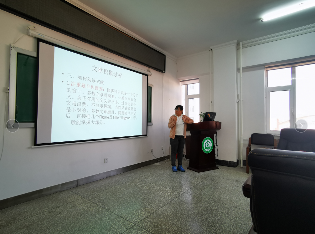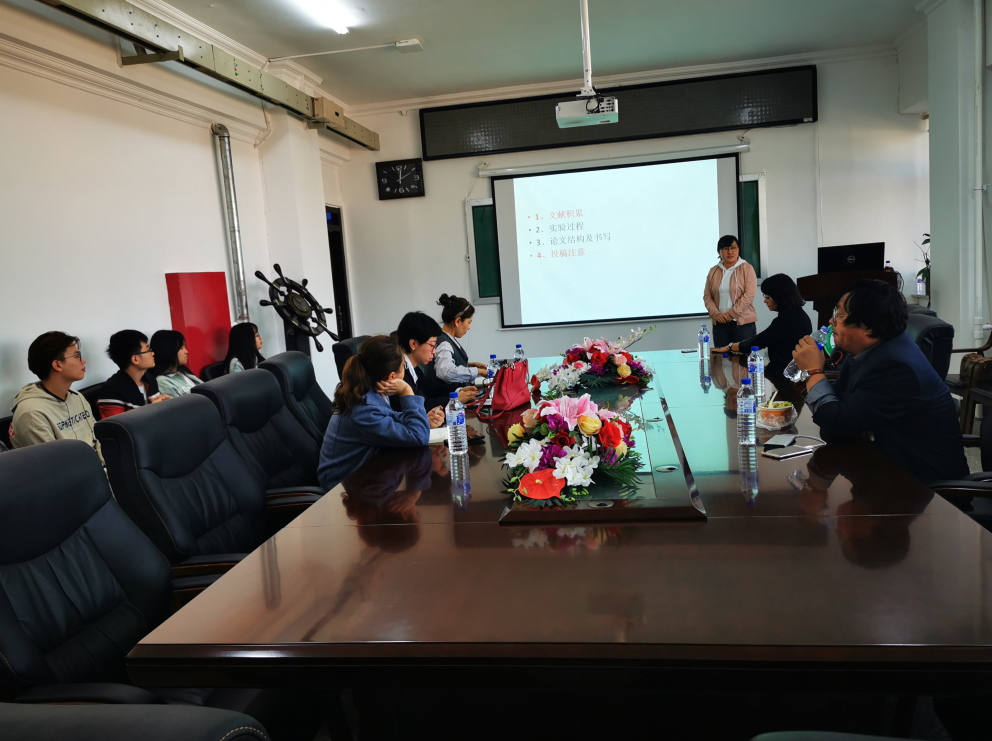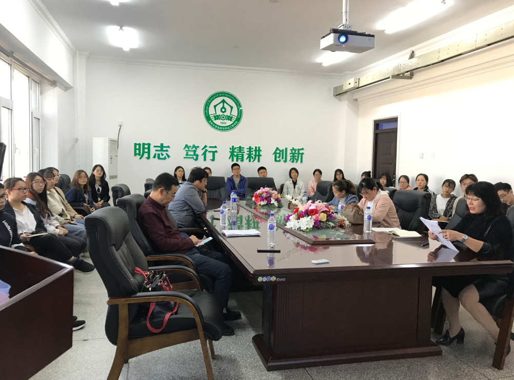 的410会议室召开了“不忘初心,牢记使命,强化业务 ,齐心奋进” 为主题的“党建+业务培训”主题教育党日活动。参加党员7人,请假2人。参加的本院各级硕士研究生21人。共计29人参会。本次活动由党支部书记李欣欣主持。大会进行了二大内容。(1)科研业务培训。由科研工作突出的本支部的党员黄卉同志首先对科研项目的开展进行了详细的经验介绍。然后又对出国前的准备工作进行了经验分享。通过这次科研业务培训,对文献阅读、一个学术工作的产生流程、文献积累过程、论文写作的前期工作等工作有了深入的了解和启迪,大家感觉受益匪浅,对黄老师的真诚的经验介绍给以热烈的掌声和感谢。(2)由李欣欣书记就立德树人要求教师应该演好“六个角色” 进行了详细的解读。“六个角色”就是教师的“三导”角色、 “朋友”角色、“医生”角色、“模特”角色、“企业家”角色、“学生”角色;并与研究生们就“新时代的研究生在学习期间应该演好几个角色?”为问题,展开了热烈的互动讨论。通过研究生们的发言,李欣欣书记最后做了归纳性总结,新时代的研究生应该演好“学生、职员、领导者、合作者、奉献者、创新者、专业知识的传播者、朋友和孩子等八个角色。最后李书记送给研究生16个字:不忘初心,方得始终,自强不息,莫负芳华。为期约1个半小时的活动,达到了预期的效果。大家感觉很有收获,受益匪浅。本次活动旨在与通过学习好的经验和新时代教师的理念,提升本支部党员的科研业务能力和教师的综合素质,党员教师能够更好地完成新时代教师的历史使命。三尺讲台存日月,一支粉笔学春秋。不忘初心,牢记使命,充分发挥支部的战斗堡垒作用和党员的先锋模范作用,通过集体学习,强化业务。促进支部党员齐心奋进,为我国的教育事业和国产自拍