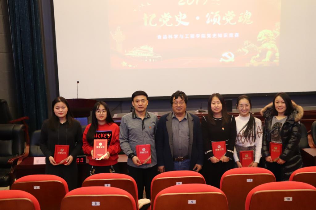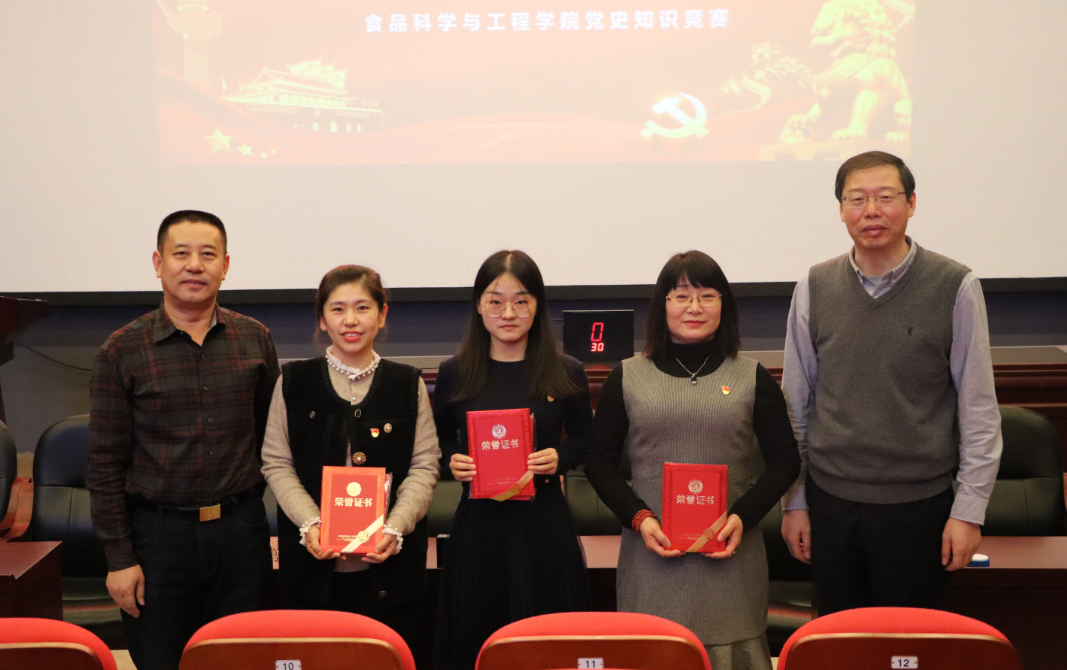 师生党员联合组成的五支代表队参赛,知识竞赛由必答题、抢答题和风险题等环节,内容涵盖《中国共产党章程》《党的十九大报告》以及党史等相关内容。比赛中,选手们精神饱满,积极踊跃,沉着应答,展现出丰富的党史知识储备。在抢答题环节,各参赛队分秒必争,精彩迭出,赢得了与会师生的热烈掌声。比赛现场气氛热烈、紧张有序、扣人心弦,经过激烈角逐,食品科学与工程系第二教师党支部代表队荣获一等奖,实验教学中心党支部代表队荣获二等奖,食品科学与工程系第二教师党支部代表队荣获三等奖,机关党支部代表队和食品质量与安全系教师党支部代表队荣获优秀奖。