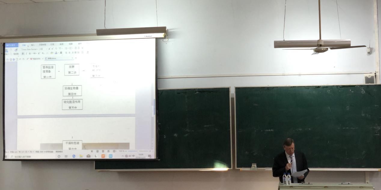 教师代表、全体研究生参加报告会。报告过程中,叶夫根尼·列奥尼多维奇·契特教授首先向大家介绍了俄罗斯从天然气、沼气等物质中提取单细胞蛋白质的研究进展。随后,斯切尔努什金·德米特里·维克托罗维奇博士向大家介绍了基于甲烷营养微生物生产单细胞蛋白质的技术情况,以及单细胞蛋白质工厂化生产所需要具备的条件和技术。