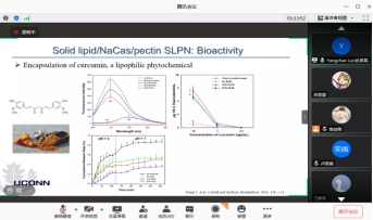 报告会开始后,罗阳超教授首先向大家介绍了美国康涅狄格大学的主要概况和科研师资力量等情况。并重点介绍了天然食品成分用于制备递送疏水性物质、胰岛素及生物活性肽等物质的载体的相关研究。主要包括纳米颗粒原料、类型、选择标准以及纳米颗粒在食品加工、贮藏、生物利用率等方面的应用,还列出了详实的数据进行讲解。最后,罗阳超教授对与会师生的提问进行了耐心和专业的解答,并对相关后续研究进行了展望。