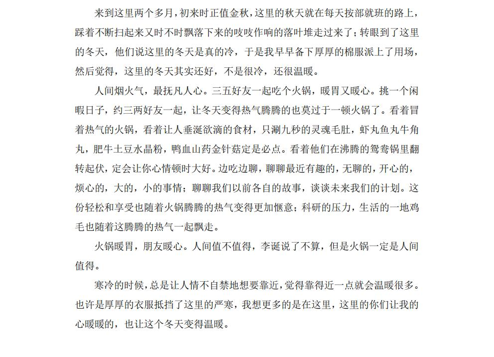 于2021年12月10日至12月12日开展了令我“温暖的一件事”故事征集活动。活动一经发出,得到了同学们的积极响应。大家热情高涨、踊跃参赛,活动取得了良好的效果,经过评议后选出了10份优秀作品。