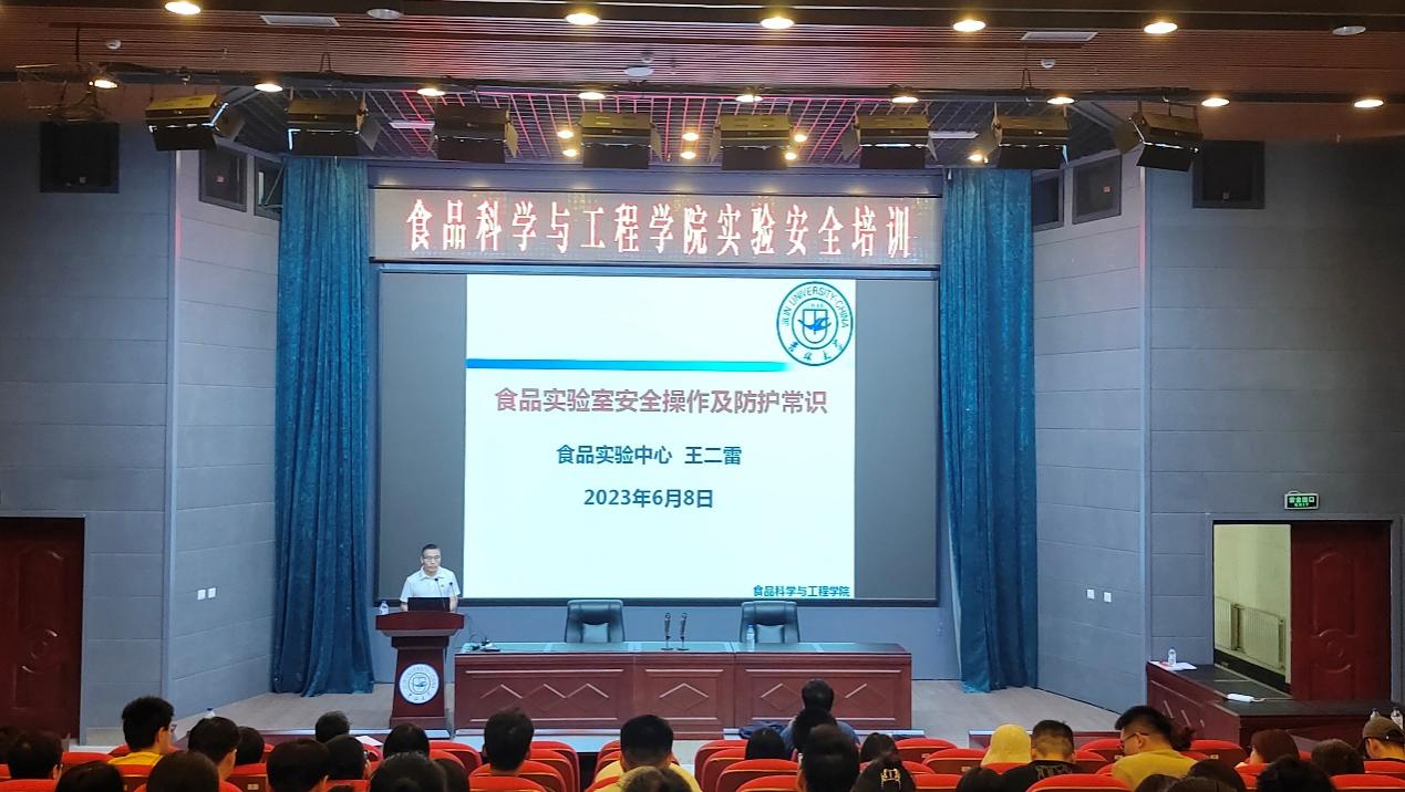 于图书馆二楼学术报告厅开展消防安全与实验室安全培训,科研副院长周亚军、行政副院长陈玉江、实验中心科研副主任王二雷老师以及全体2021级、2022级研究生参加会议。