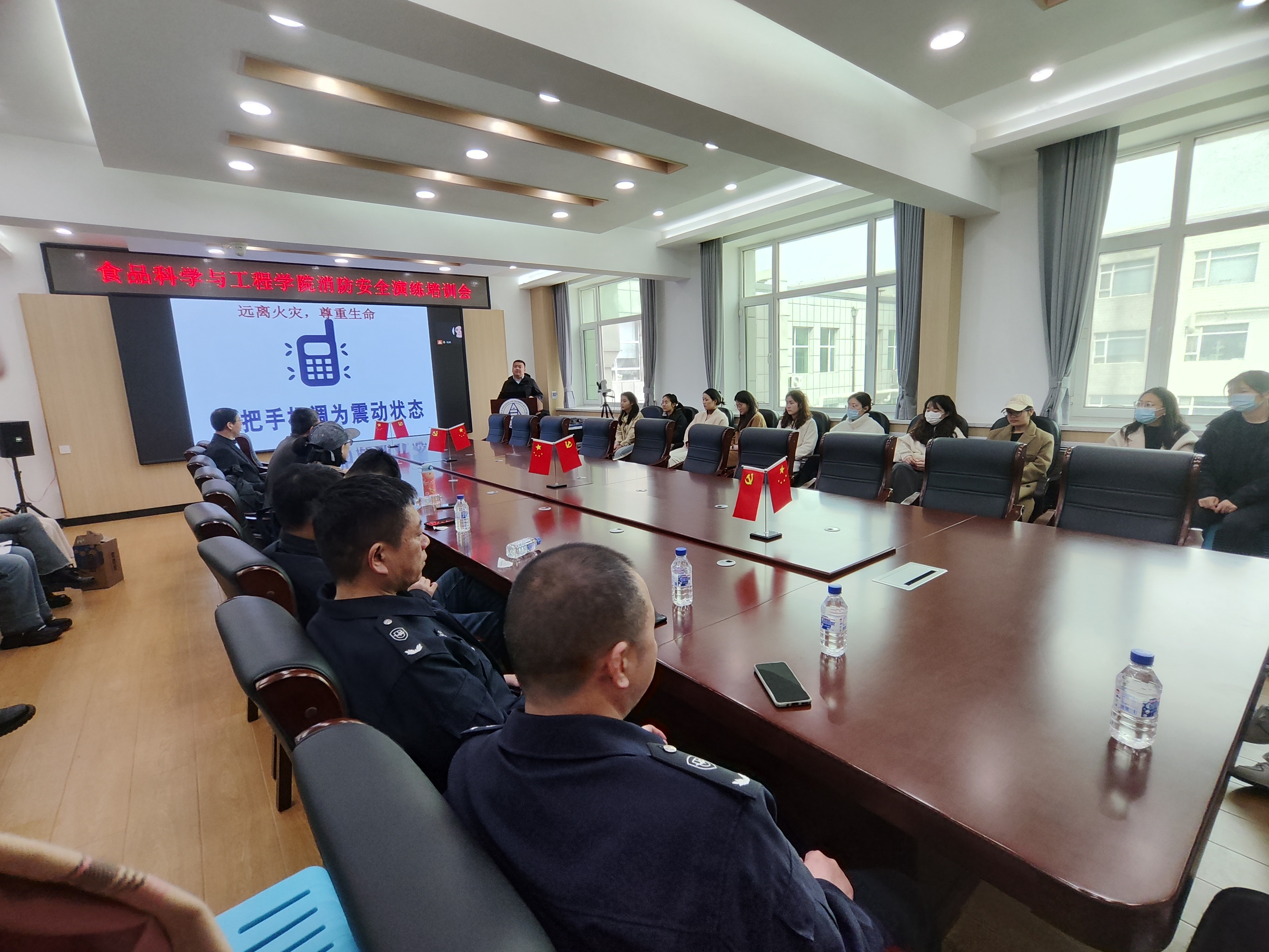 师生进行了消防安全知识培训。辛万磊主任结合消防法规的执行情况,日常学习生活中可能发生的异常情况和突发事件,为师生们进行了详尽的科普。重点讲解了消防安全防控要点,隐患排查的方法和风险预知的重要性,确保师生们能够在面对类似情况时,做出迅速、准确的判断和应对措施。同时,辛万磊主任还结合具体案例对扑救初期火灾方法、消防器材使用等内容进行了介绍。