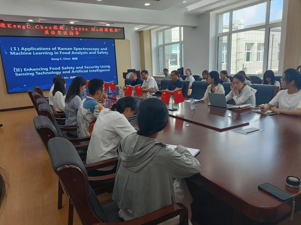 Keng C. Chou教授作了题为《Applications of Raman Spectroscopy and Machine Learning in Food Analysis and Safety》的讲座,详细介绍了拉曼光谱技术在食品安全检测中的应用前景。他强调了拉曼光谱技术具有快速、廉价且无损检测的优势,特别适用于食品中的成分分析、掺假识别等方面。此外,Chou教授还分享了其团队在结合机器学习方法提高拉曼光谱检测精度方面的研究成果,展示了对复杂食品样品进行高效分类和识别的最新进展。
