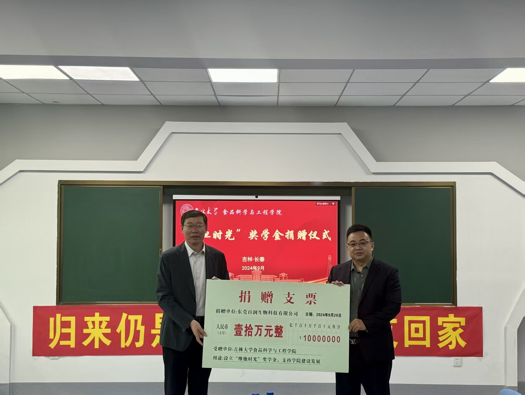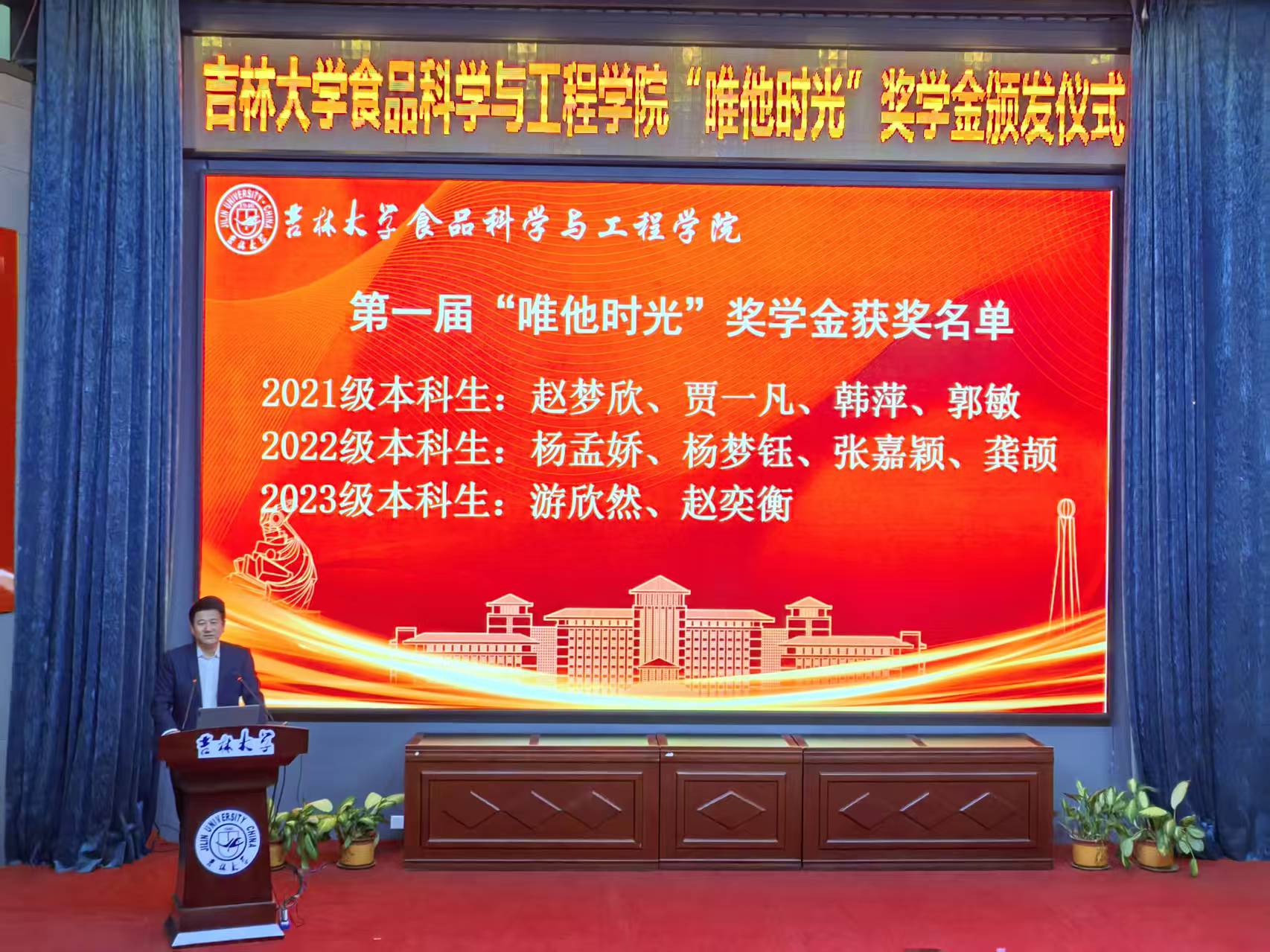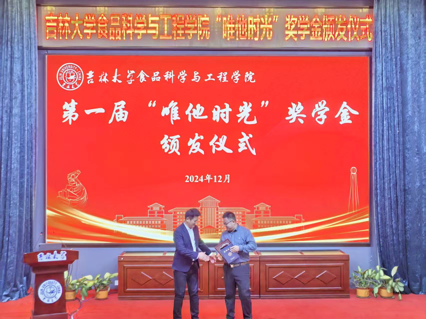 庆日时,向母校捐赠10万元设立“唯他时光”奖学金,用于资助热爱食品专业、品学兼优的大学生。