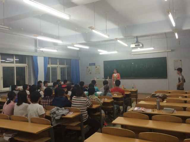 2015级辅导员金鑫老师、各班级代班同学以及2015级全体新生参加本次班会。
