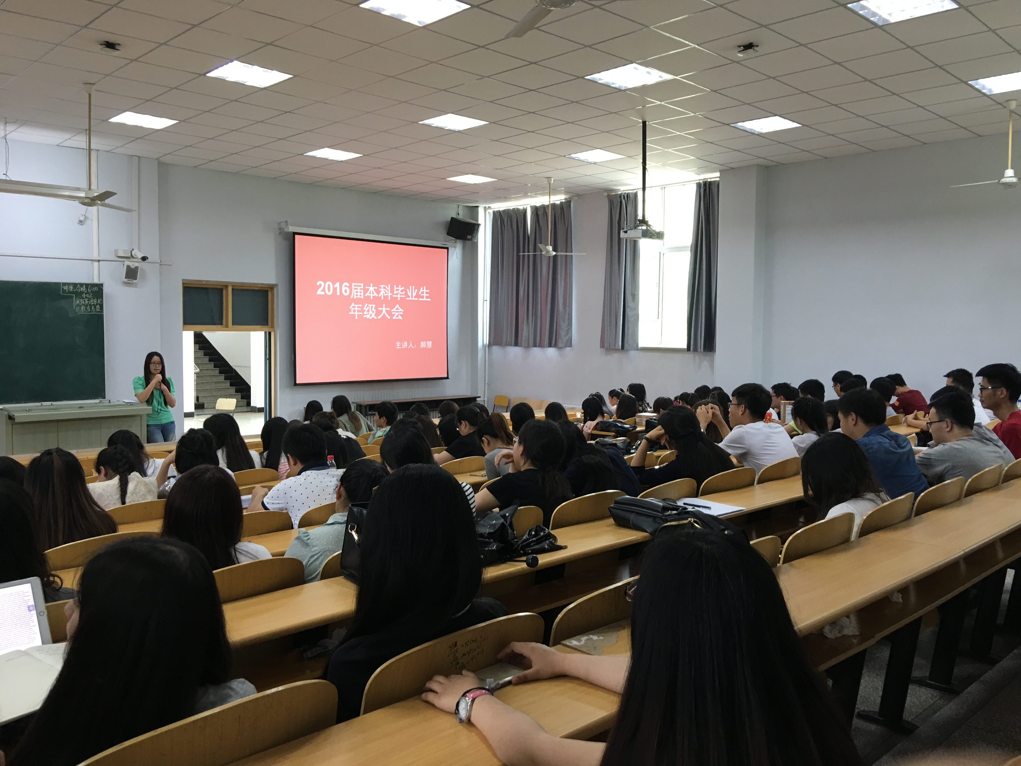 本科毕业生齐聚一堂,于科学讲堂200教室热烈召开毕业生年级大会。本次会议由2012级辅导老师郝慧老师主持。 会议初始,郝慧老师向各位同学传达了关于毕业的相关事宜,包括毕业生档案的整理和档案地址确认、派遣证的核对和发放、户口的迁移落户、毕业证和学位证的发放、党员关系的转移、毕业典礼的召开以及离校手续的办理等等。教导同学们一定要做好毕业前的各项工作,及时关注院系动态和新通知,以免错过重要的通知。另外,郝慧老师还嘱咐每一名学生,几点需要特别注意的事项:第一,毕业在即,同学们在欢聚和告别的同时,一定要谨记安全第一。第二,在六月下旬会有许多重要的毕业相关事项,希望同学们不要离开国产自拍