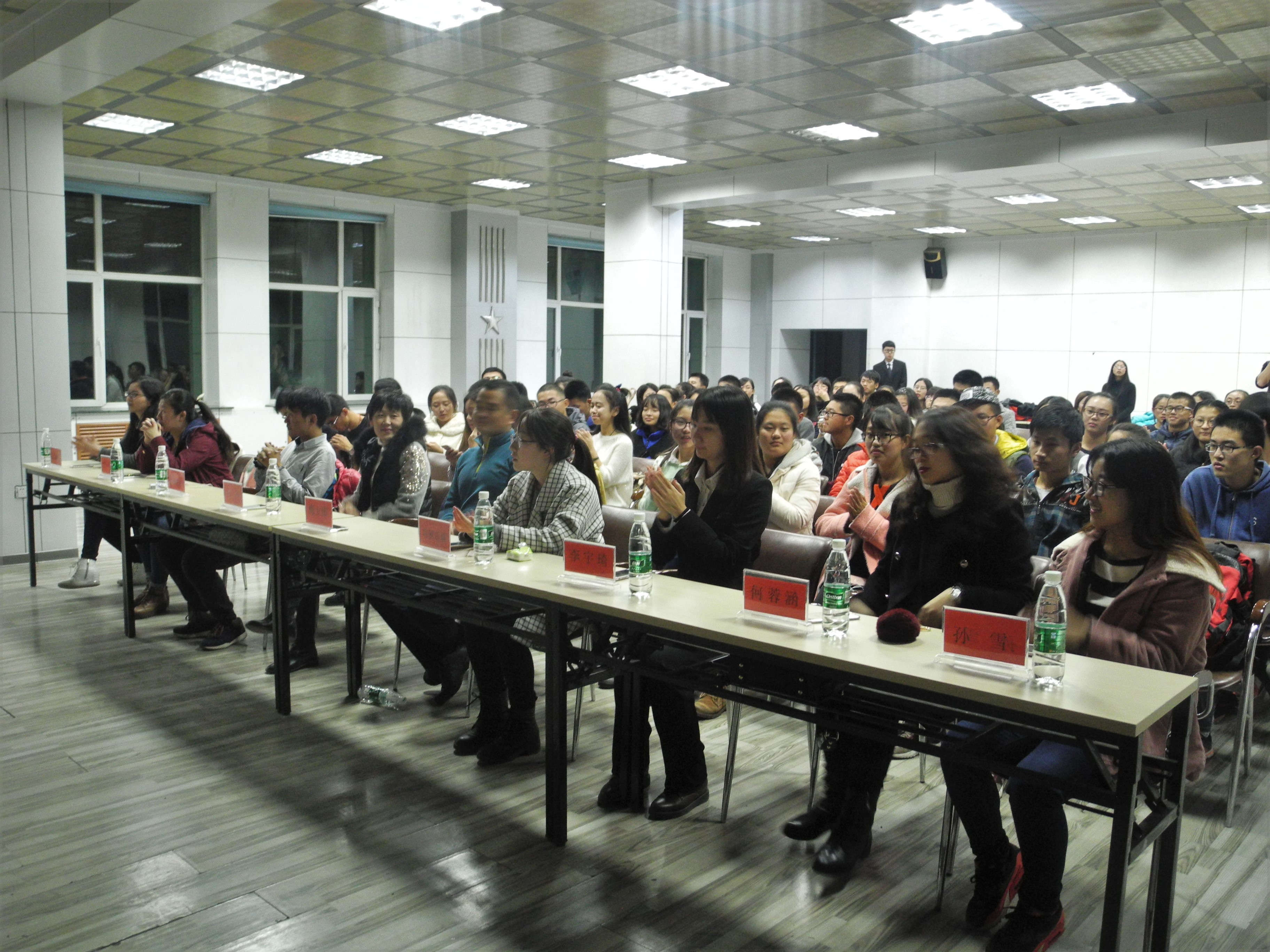 第二届学生会全体成员参加了此次活动。 活动中,各部门成员依次上台进行自我介绍,形式多样,内容丰富,涵盖了舞蹈、相声、歌曲等多个方面,获得了与会领导的高度肯定与赞扬。期间,穿插了“你与我的圈”、“演技不NG”两个小游戏增强了活动的趣味性,现场气氛高涨,掌声不断。最后,梅士伟老师和王丹老师分别就本次活动进行了点评,肯定了同学们的表现并表达了对同学们的美好祝愿和殷切希望;此外,梅士伟围绕“学生会成员有具备的素质”、“学生会的职能机制及方法改革”、“学生会的工作作风”三大主题向同学们提出了自己的要求,希望同学们能够找到工作与学习间的平衡,在保证学业的同时,认真完成国产自拍