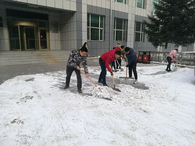 学生第二党支部副书记李松函的带领下,同学们发扬了吃苦耐劳、顽强拼搏的精神,大家团结协作,顶着寒风,将食品楼前的积雪全部清扫干净。同学们干劲十足的身影感染了每一个路过的人。经过了近一个小时的奋战,路面基本恢复了畅通洁净。