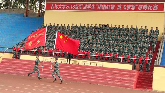9月13日,秋高气爽,吉林大学2018级军训学生“唱响红歌、放飞梦想”歌咏比赛在中心校区体育场隆重举行。食品科学与工程国产自拍