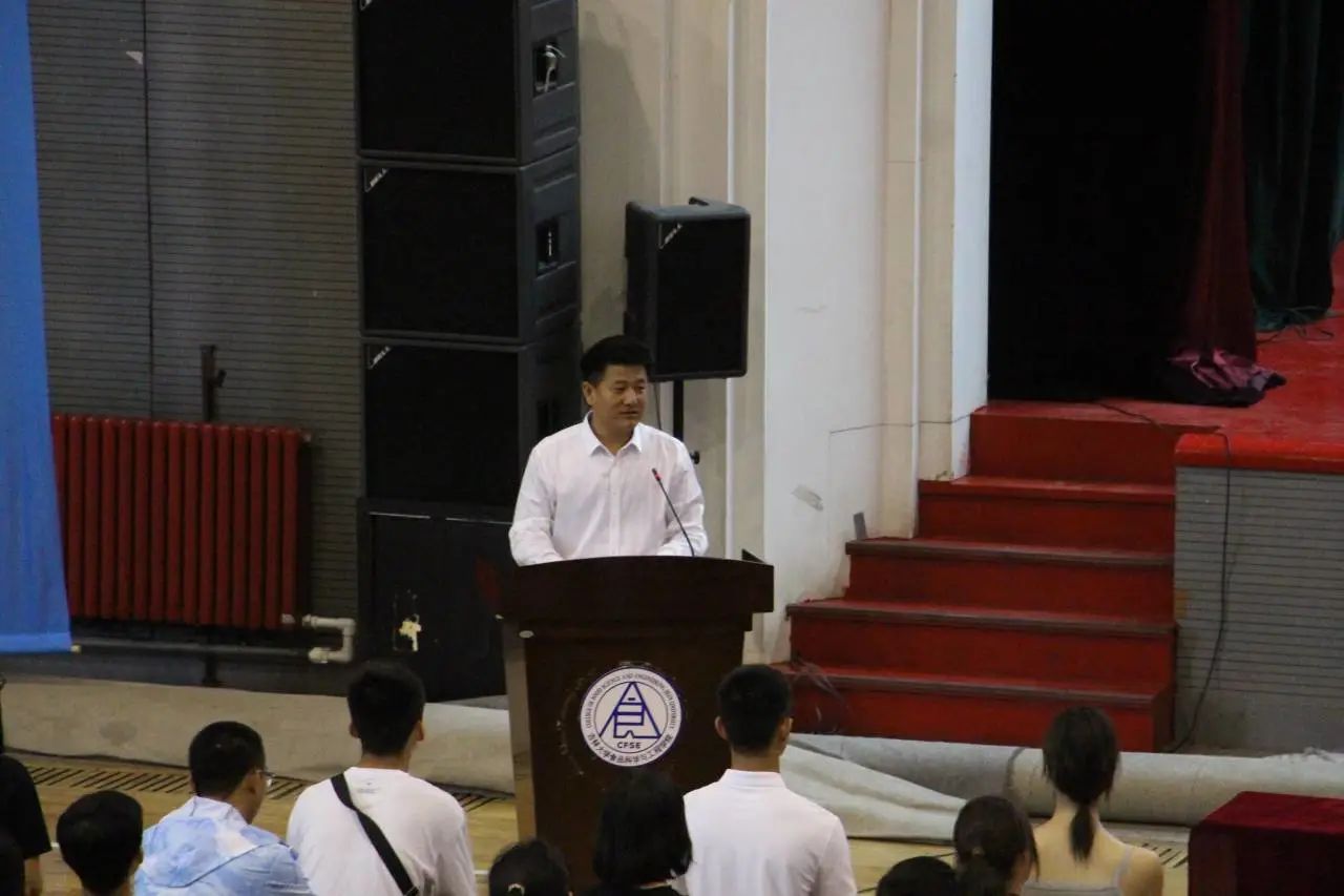 党委书记董怀智以“勇担强国重任,敢为民族栋梁”为题为新生讲授开学第一课。他先是带领同学们追忆峥嵘岁月,介绍吉林大国产自拍