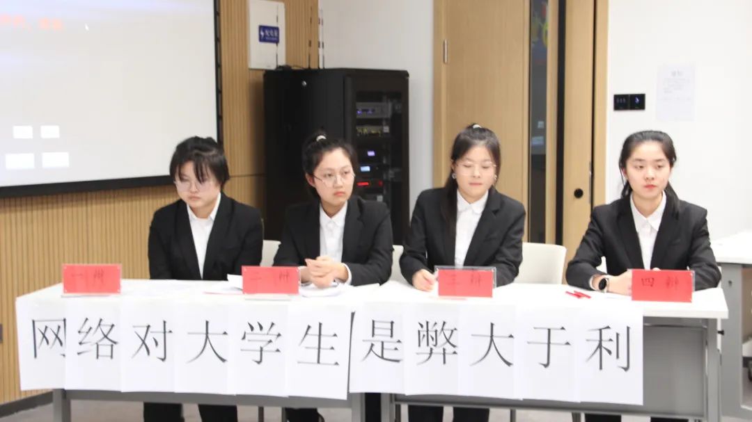 半决赛第一场的辩题是网络对大学生的利弊。正方我说的都队与反方从容应队进行了激烈的交锋。参与第一场比赛的评委有国产自拍